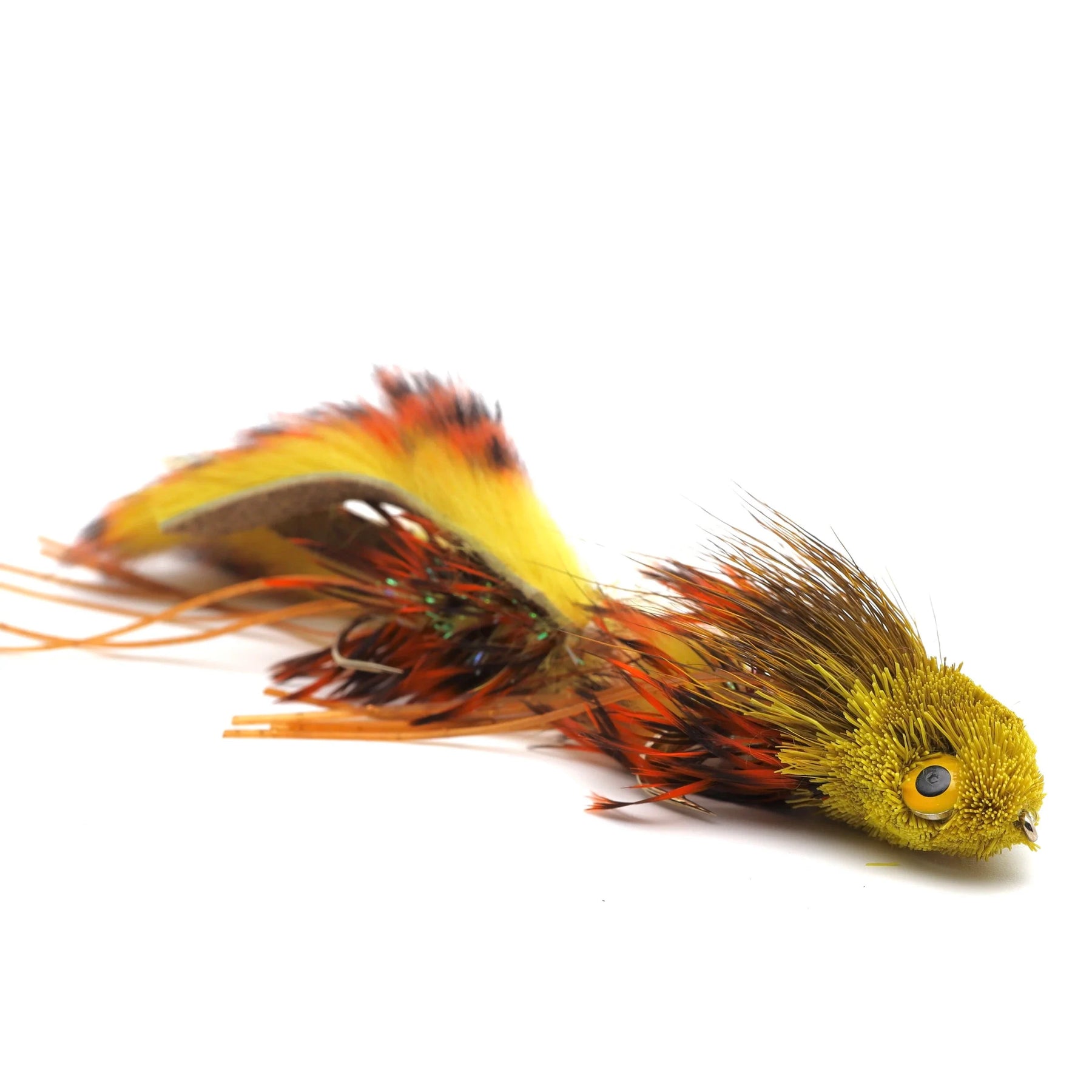 Size 4. It has been known to be extremely effective is waters with and without crayfish, making it just as much an attractor pattern as a crayfish one. Zonker strips on the tail give this fly increased “secondary” movement. A great option for slower/still water.
