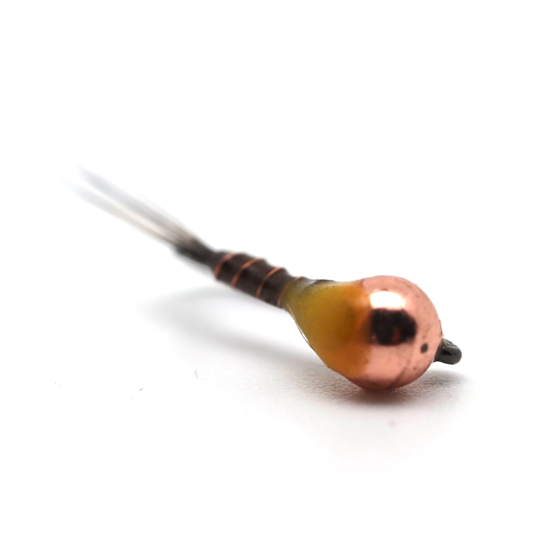 The PMD Perdigon is a precision-crafted, Frenchie-style nymph designed to shine during Pale Morning Dun (PMD) hatches—but don’t let the name fool you. With its slim profile, fast sink rate, and subtle yellow UV resin accent, this fly is just as effective as a general mayfly imitation or even a small golden stone in rivers across the country. What sets this variation apart is the extra drop of yellow UV resin on the wing case, which adds a touch of realism and acts as a strike-triggering hotspot.